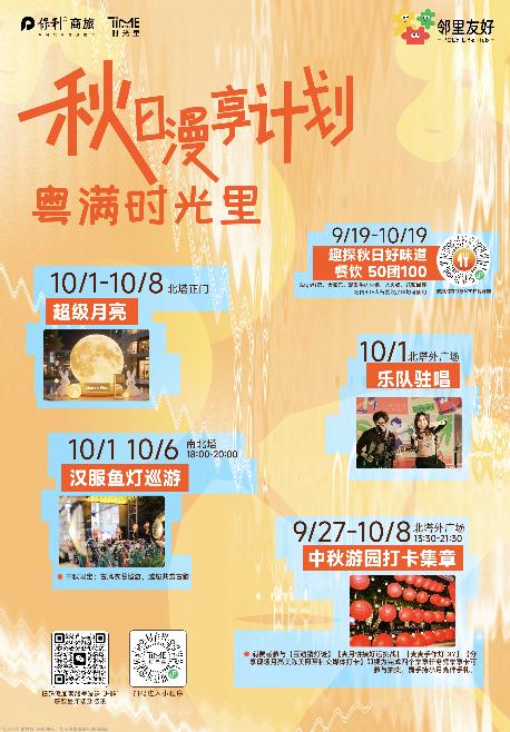 中秋意正浓。广州保利时光里为社区居民带来一场别样的团圆聚会。玩转“粤满时光”中秋游园会,看汉服鱼灯巡游、玩非遗猜灯谜;DIY麦麦月光灯和盒马月饼,盒马与麦当劳“双品牌会员悦享日”点亮大家的中秋记忆;招商银行联动场内30多家餐饮商户,配套推出“趣探秋日好味道”招商银行50团100活动。