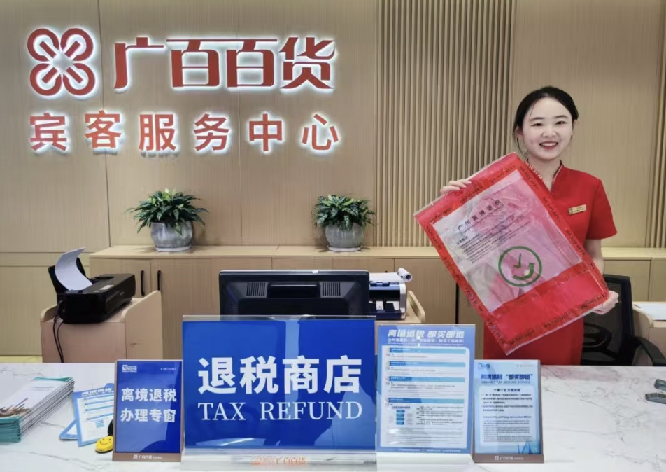 来北京路购物,离境退税不用烦。作为两千年不变的城市轴线,北京路商圈拥有大佛寺、千年古道、南越王博物院等历史文化景点,商圈内“国潮+文创+时尚”品牌叠加,成为旅客来广州必逛商圈。近日,在前期试点发展“即买即退”商店的基础上,越秀区在广百北京路店推出全市第二个“即买即退”集中退付点,将退税流程前置到消费场景,让旅客大大缩短退税的时间,实现“全市通退”,也刺激旅客二次消费的需求,为商圈激发二次消费的新活力。今年,广百北京路店合共办理离境退税笔数同比增长341%;带动门店销售金额同比增长190%。国庆期间,广百北京路店推出“国潮当道”活动,各类化妆品、穿戴类、运动休闲精选、电器、超市均有5-8折的价格优惠,还有团购券等,为来北京路的旅客带来更多购物选择。